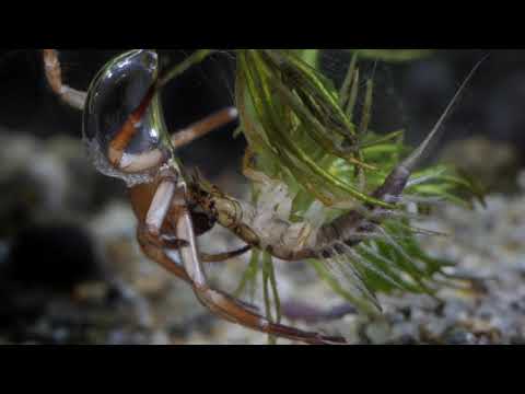 • A víziskorpió (Nepa cinerea) lárvája víziászkát zsákmányol
